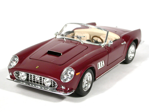 Retired Models > 1960 Ferrari 250 GT California diecast model car 1:18 scale Spider by Hot Wheels - Burgundy Spider